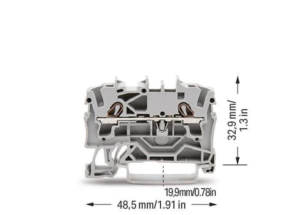 2-conductor through terminal block; 2.5 mm²; suitable for Ex e II applications; side and center marking; for DIN-rail 35 x 15 and 35 x 7.5; Push-in CAGE CLAMP®; 2,50 mm²; gray.