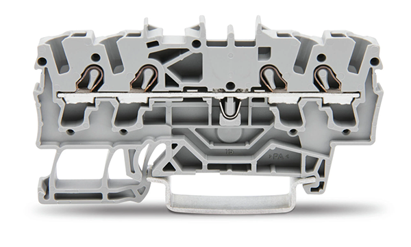 4-conductor through terminal block; 2.5 mm²; suitable for Ex e II applications; side and center marking; for DIN-rail 35 x 15 and 35 x 7.5; Push-in CAGE CLAMP®; 2,50 mm²; gray.