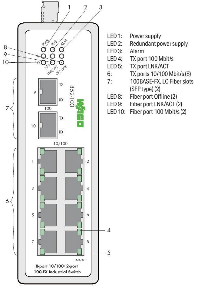 Industrial-Switch; 8-port 100Base-TX; 2 Slots 100Base-FX; black