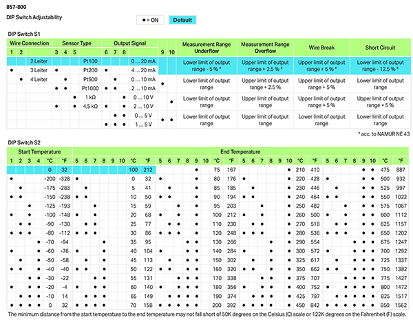 Temperature signal conditioner for RTD sensors; Current and voltage output signal; Configuration via DIP switch; Supply voltage: 24 VDC; 6 mm module width; light gray.