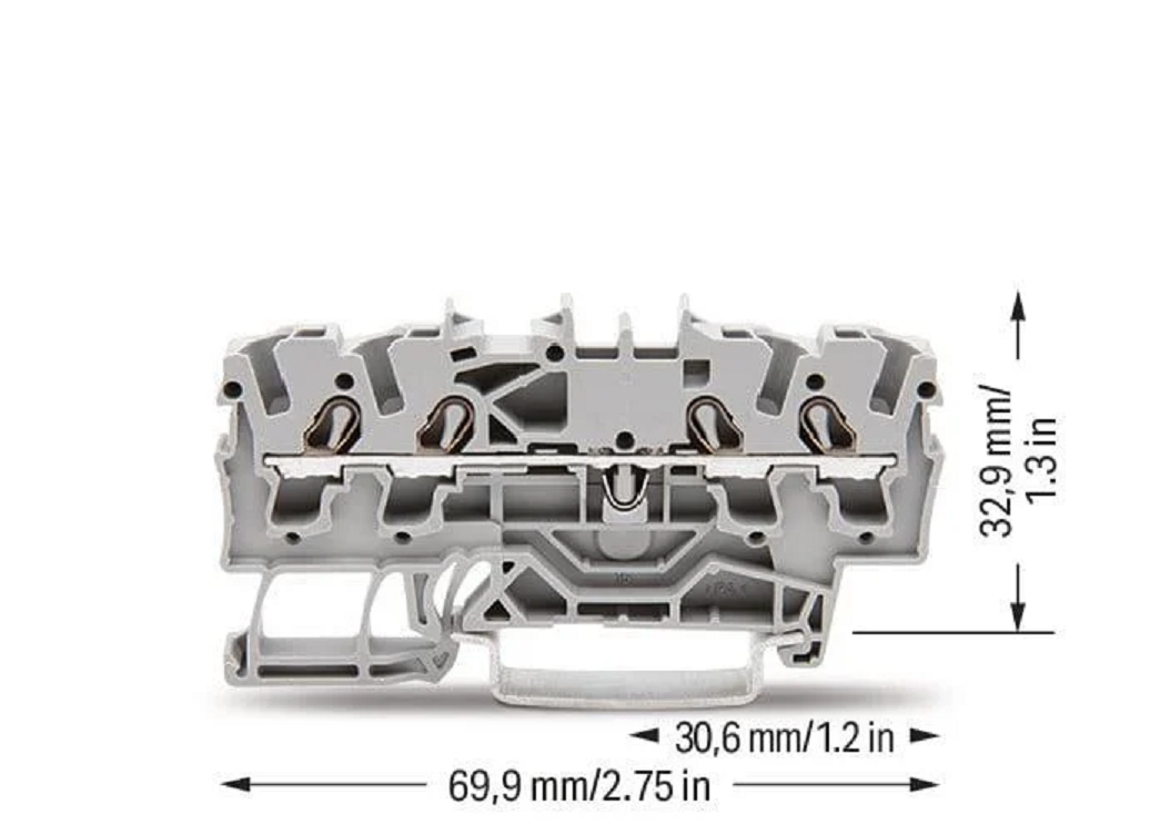 4-conductor through terminal block; 2.5 mm²; suitable for Ex e II applications; side and center marking; for DIN-rail 35 x 15 and 35 x 7.5; Push-in CAGE CLAMP®; 2,50 mm²; gray.