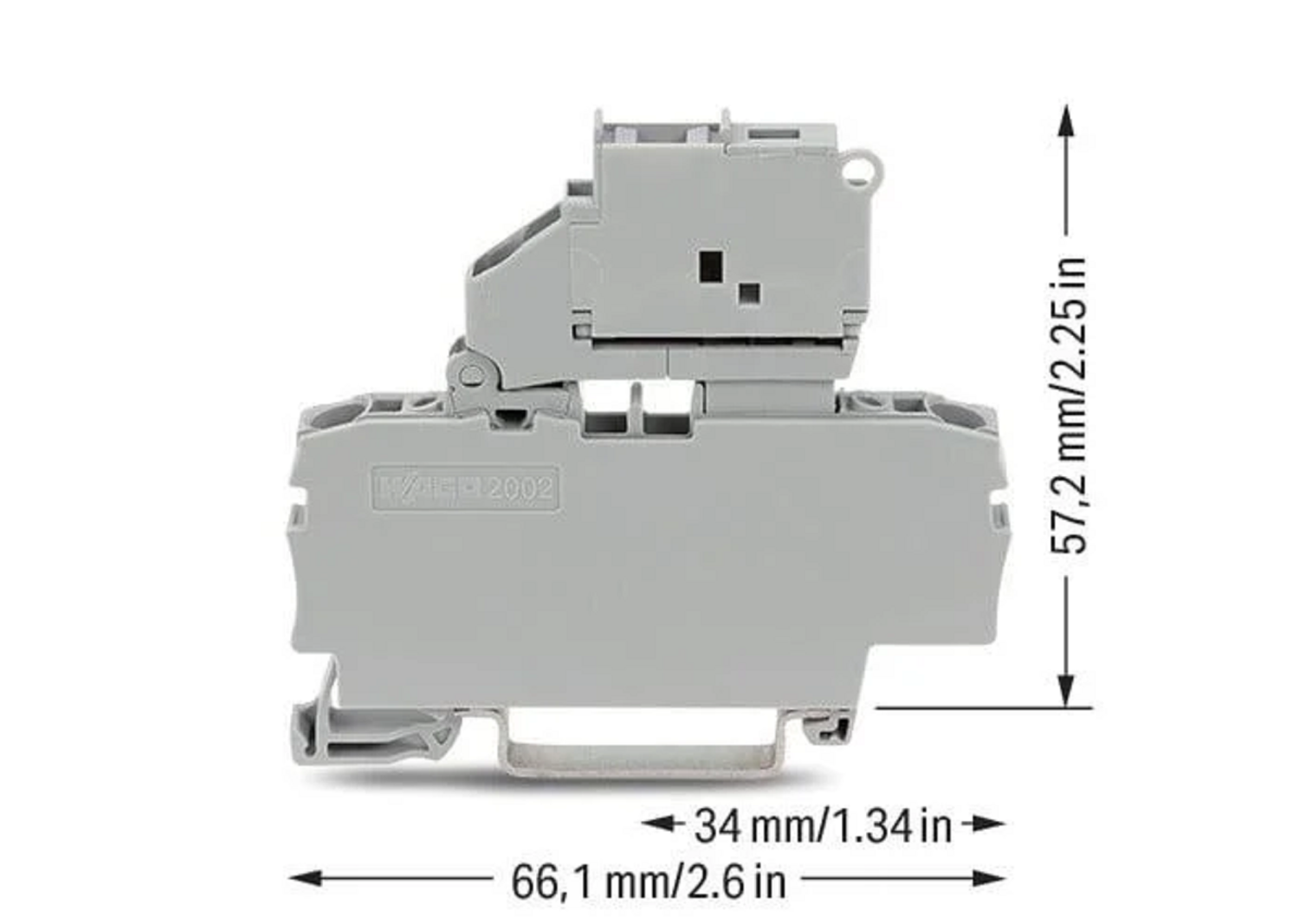 2-conductor fuse terminal block; with pivoting fuse holder; and end plate; for 5 x 20 mm miniature metric fuse; without blown fuse indication; for DIN-rail 35 x 15 and 35 x 7.5; 2.5 mm²; Push-in CAGE CLAMP®; 2,50 mm²; gray