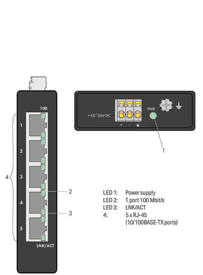 Industrial-ECO-Switch; 5-port 100Base-TX; black
