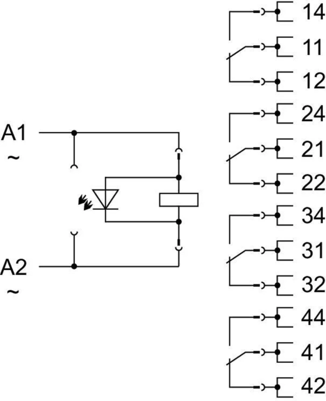 Relay module; Nominal input voltage: 230 VAC; 4 changeover contacts; Limiting continuous current: 5 A; with manual operation; Red status indicator; Module width: 31 mm; 1,50 mm²